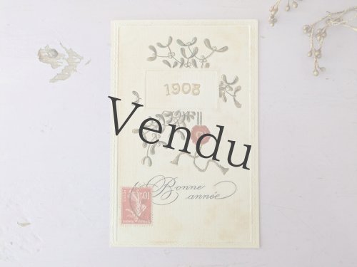 フランス 1900-1920年 Bonne Année 切手つきポストカード 女性とヤドリギ