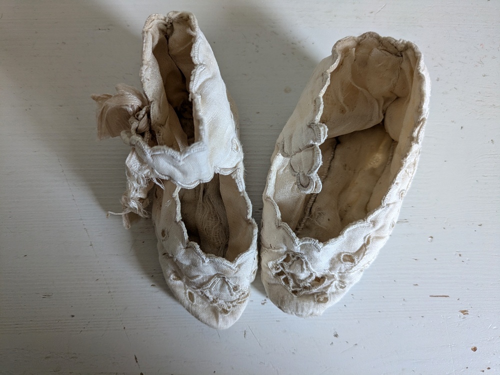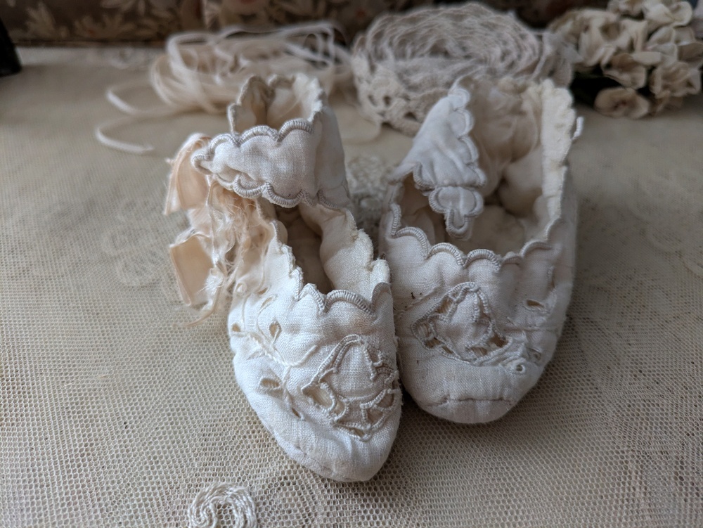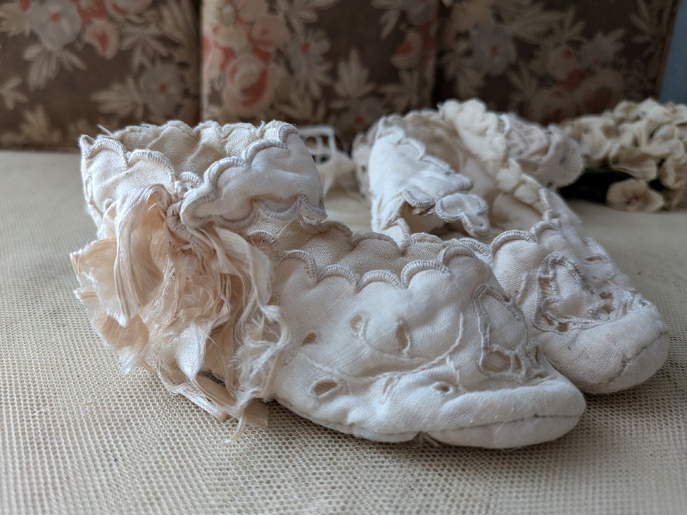 - > フランス 1900年前後 カットワーク刺繍 べべのパントゥーフル(室内履き)
