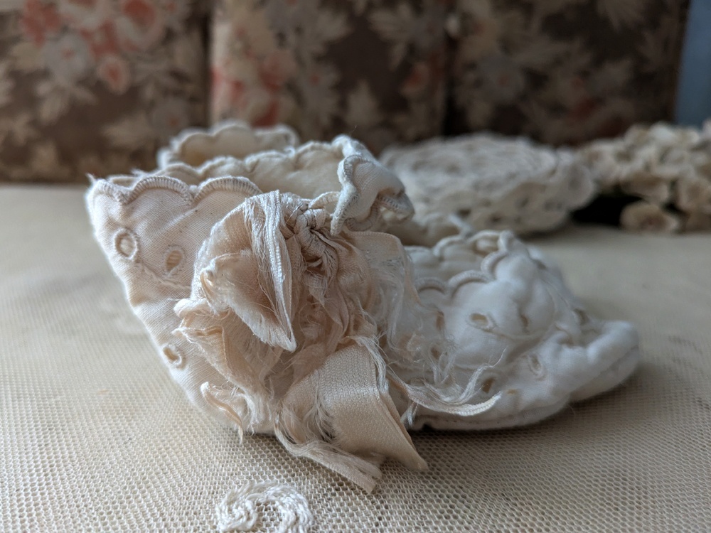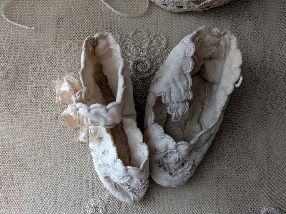 フランス 1900年前後 カットワーク刺繍 べべのパントゥーフル(室内履き)