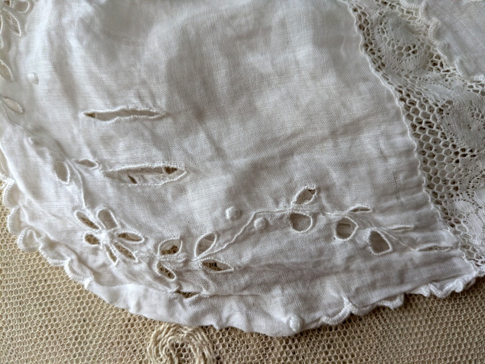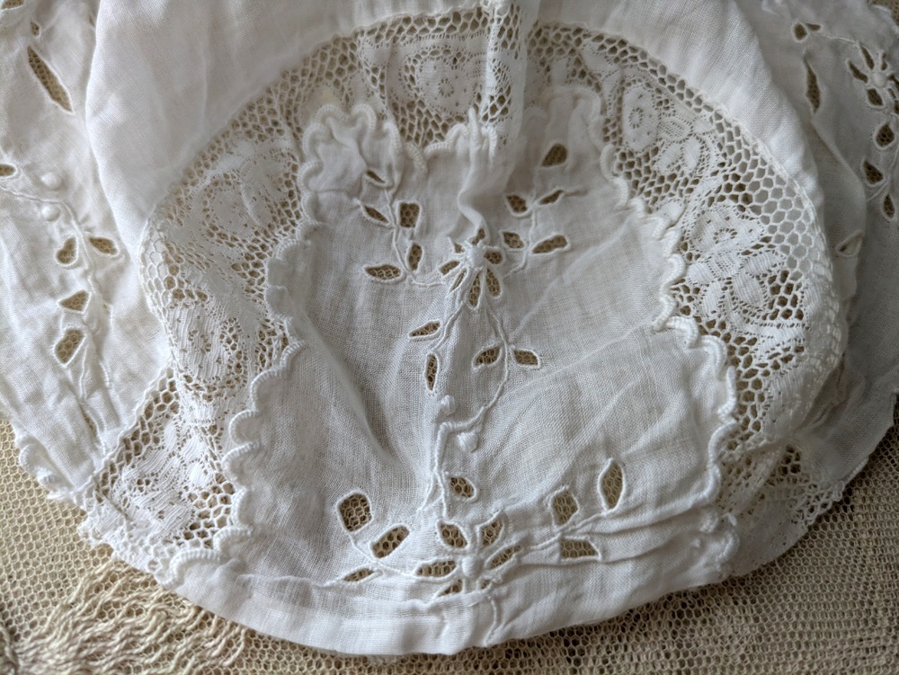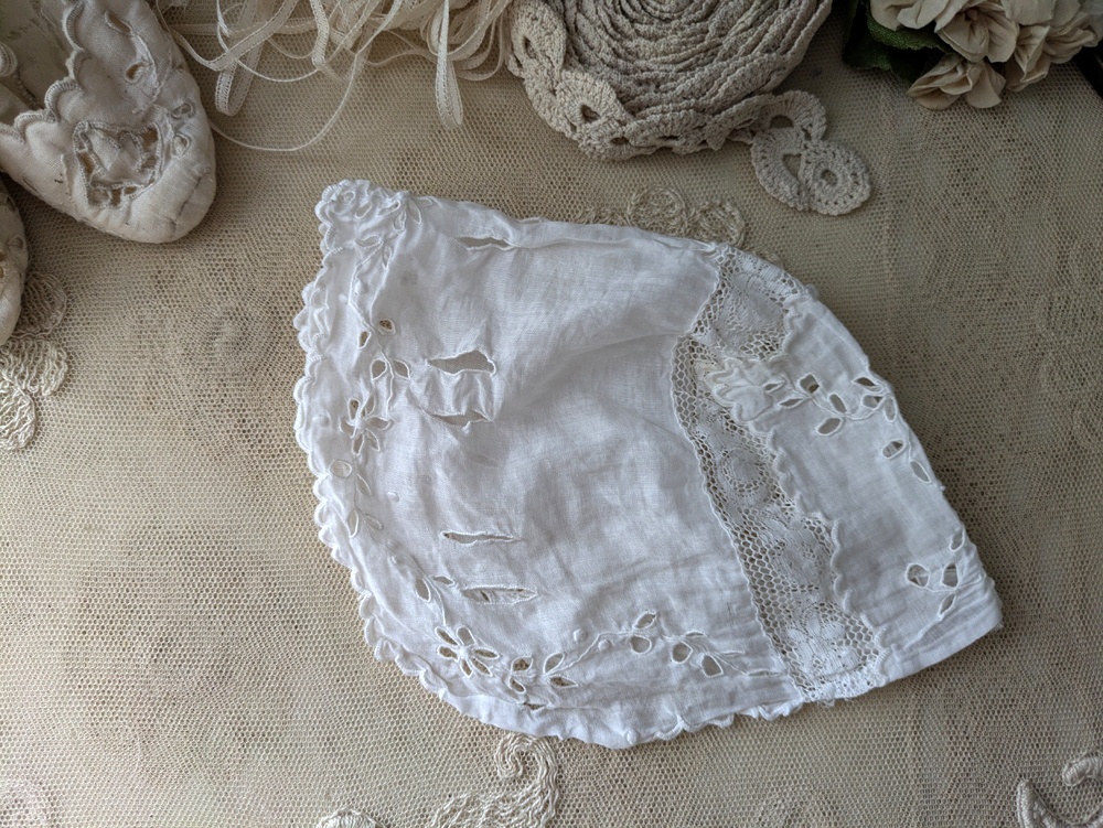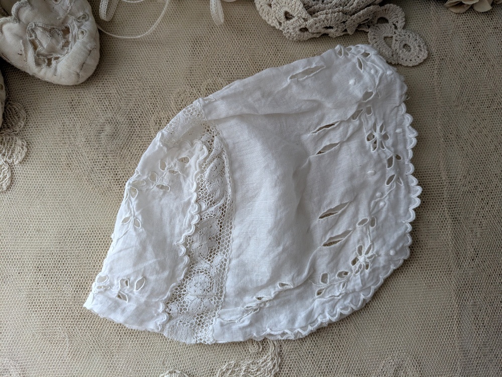 - > フランス 1900年前後 カットワーク刺繍の小さなボネ