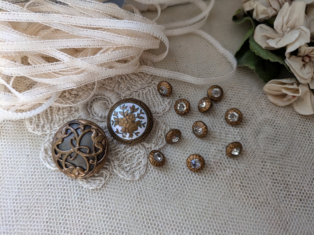 - > フランス 1900年前後 極小ボタン メタル×ストラス 7mm