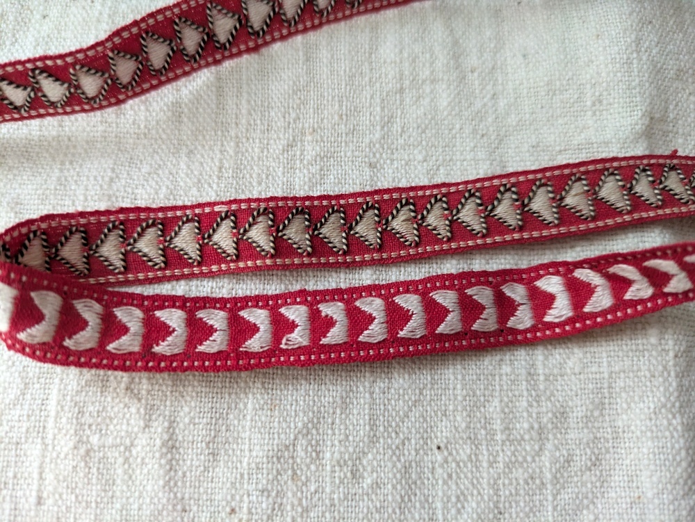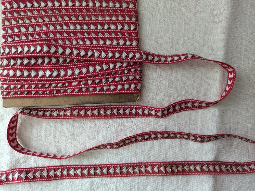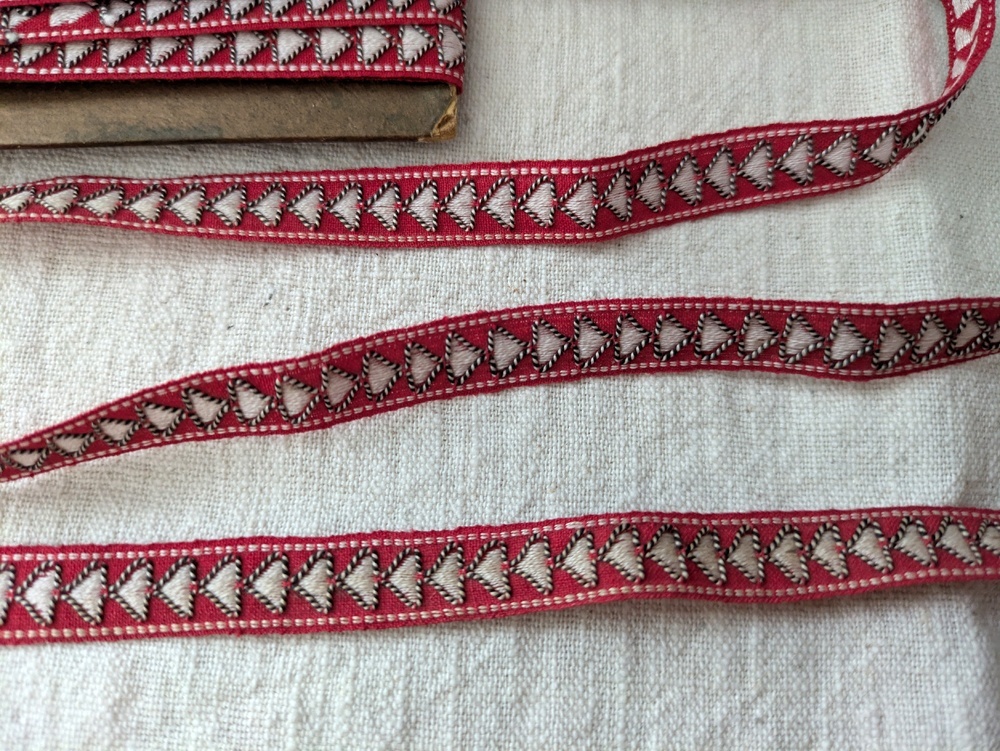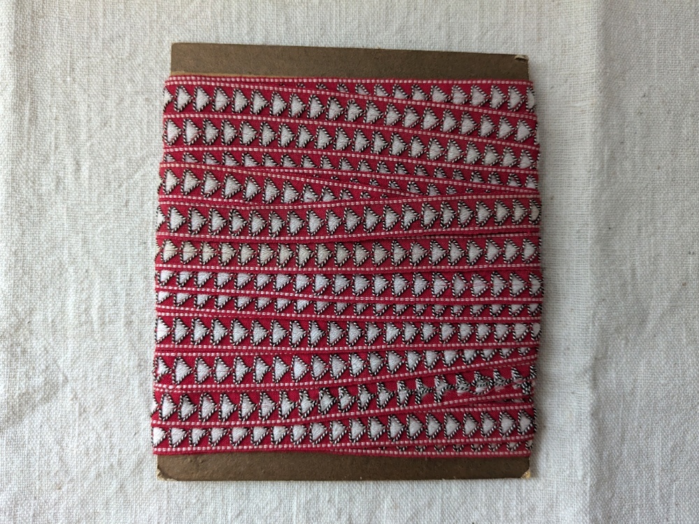 フォークロアなデザインのジャガード織りリボンです。