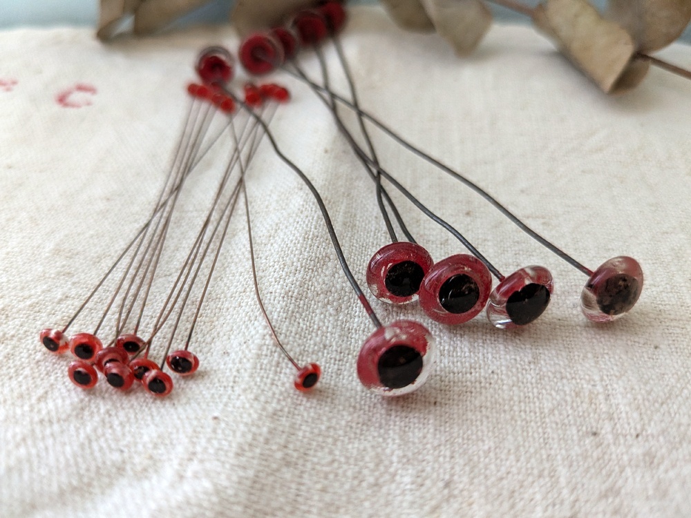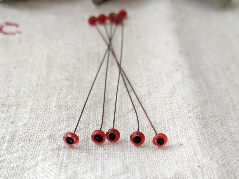 - > フランス 1930-50年頃 グラスアイ 5本セット/赤4mm
