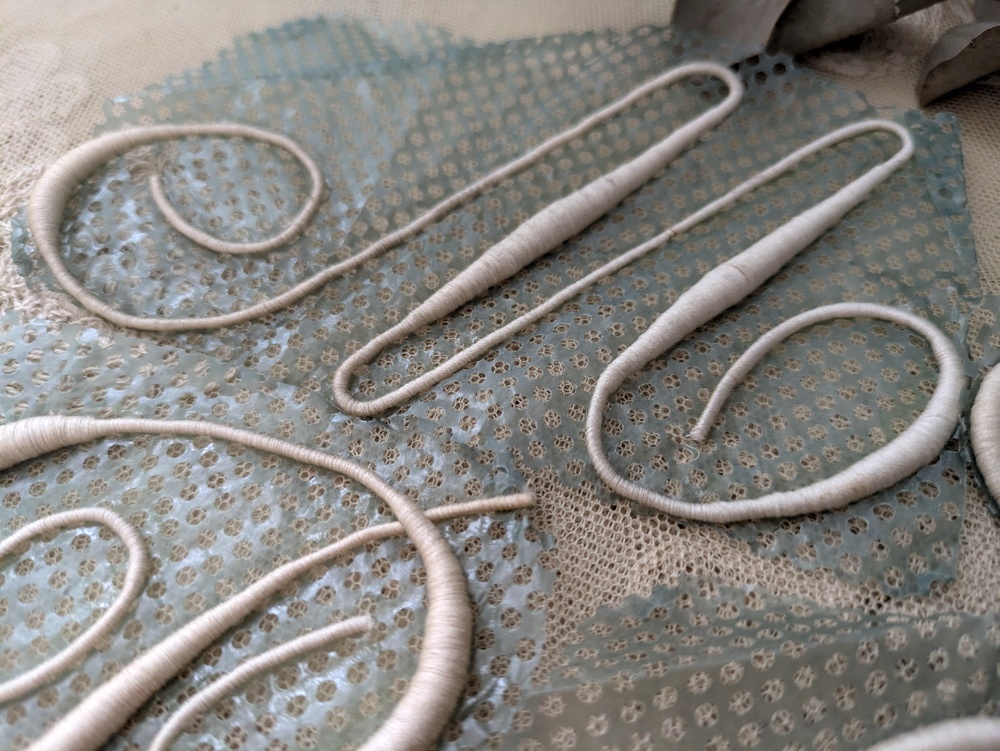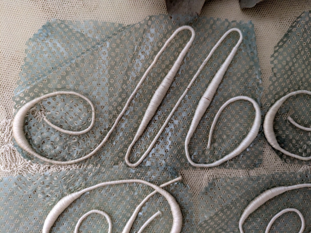 流れるような美しい曲線のカリグラフィの刺繍は、家着やリネン類ひとつひとつに家族のイニシャル刺繍を入れていた時代、お母さん達の手仕事の時間を短縮するために発案された製品でした。