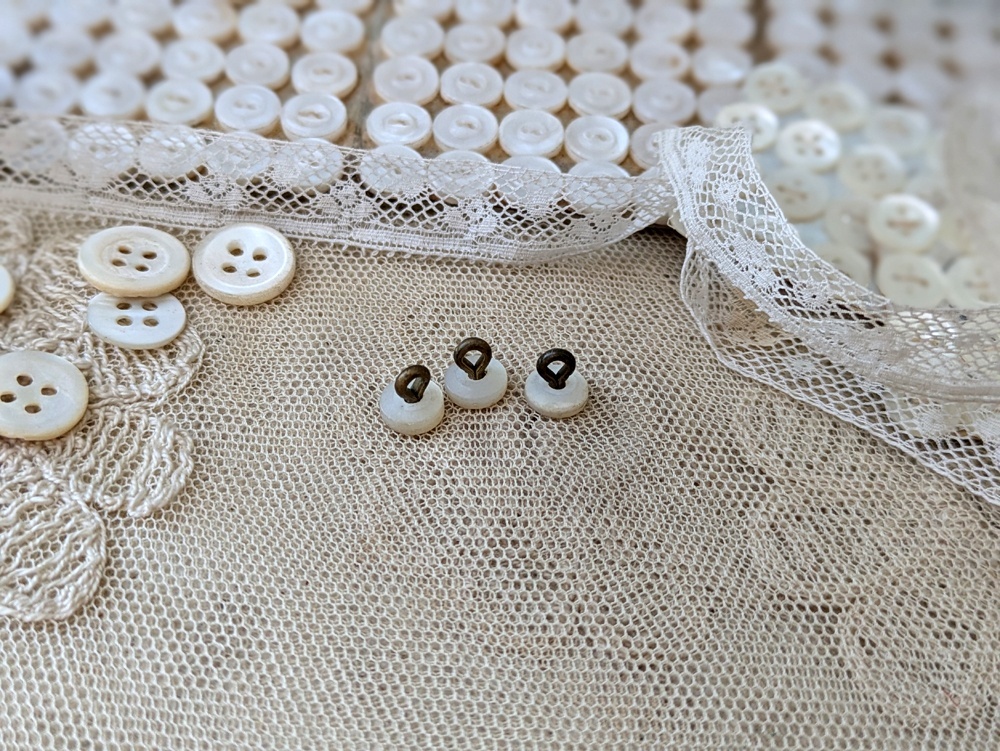 - > フランスアンティーク 小さな貝ボタン 3個セット 7mm