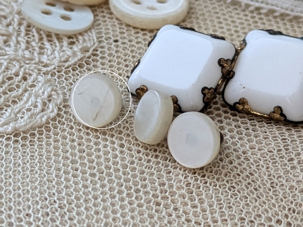 ボタンの一つ表面に薄いヒビがあります。