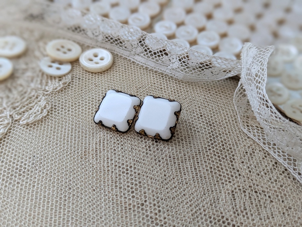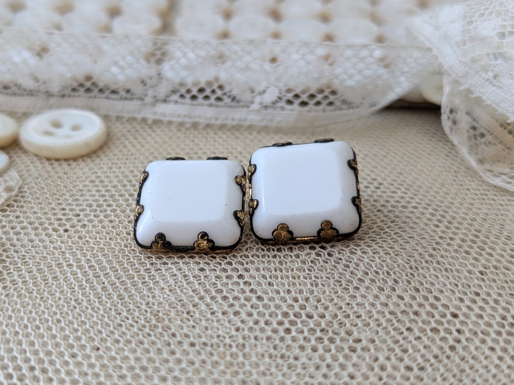 - > フランスヴィンテージ 白い陶器ボタン 2個セット 13mm