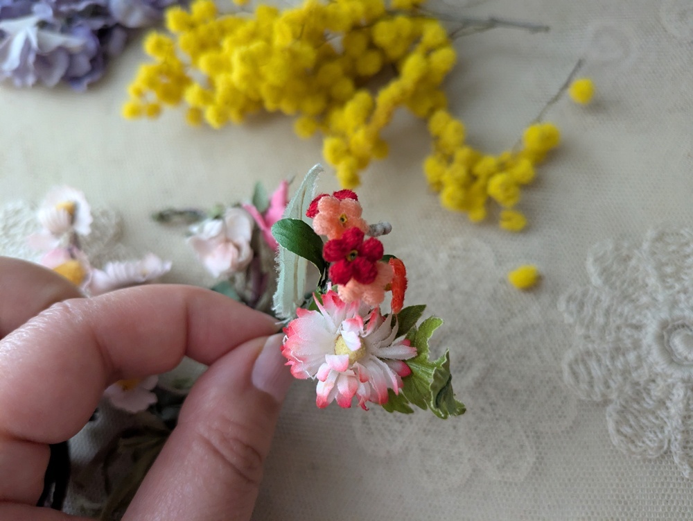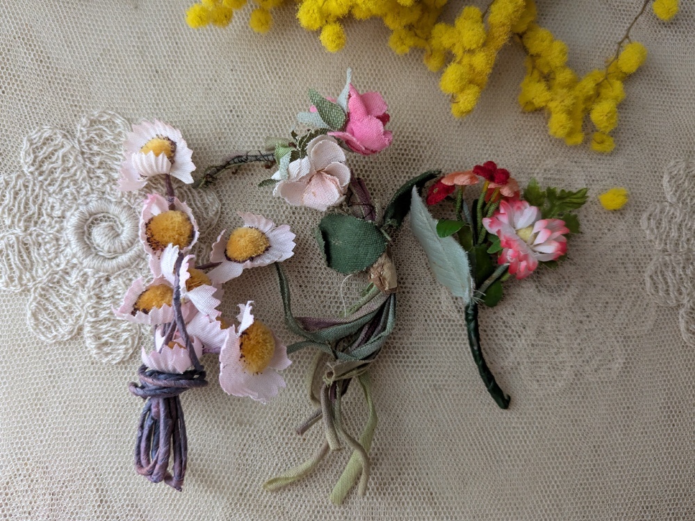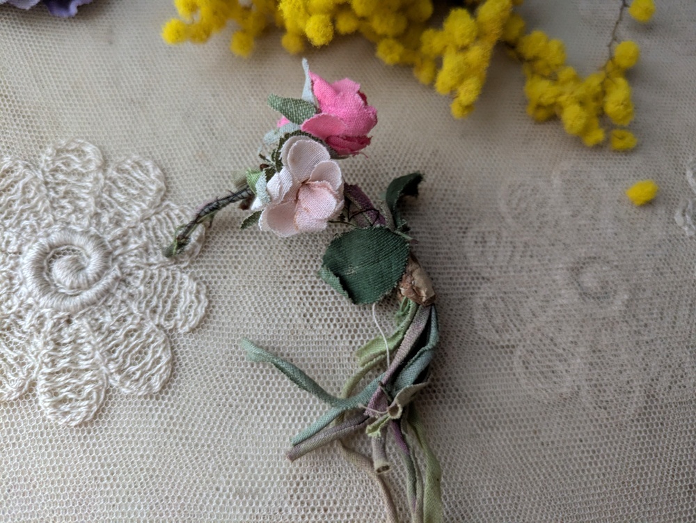- > フランスヴィンテージ 小さな布花3つセット