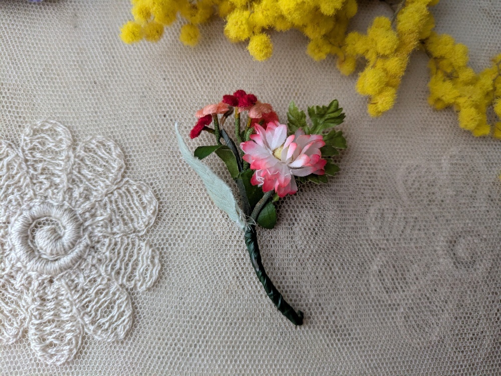小さな布花のコサージュ3つセットです。