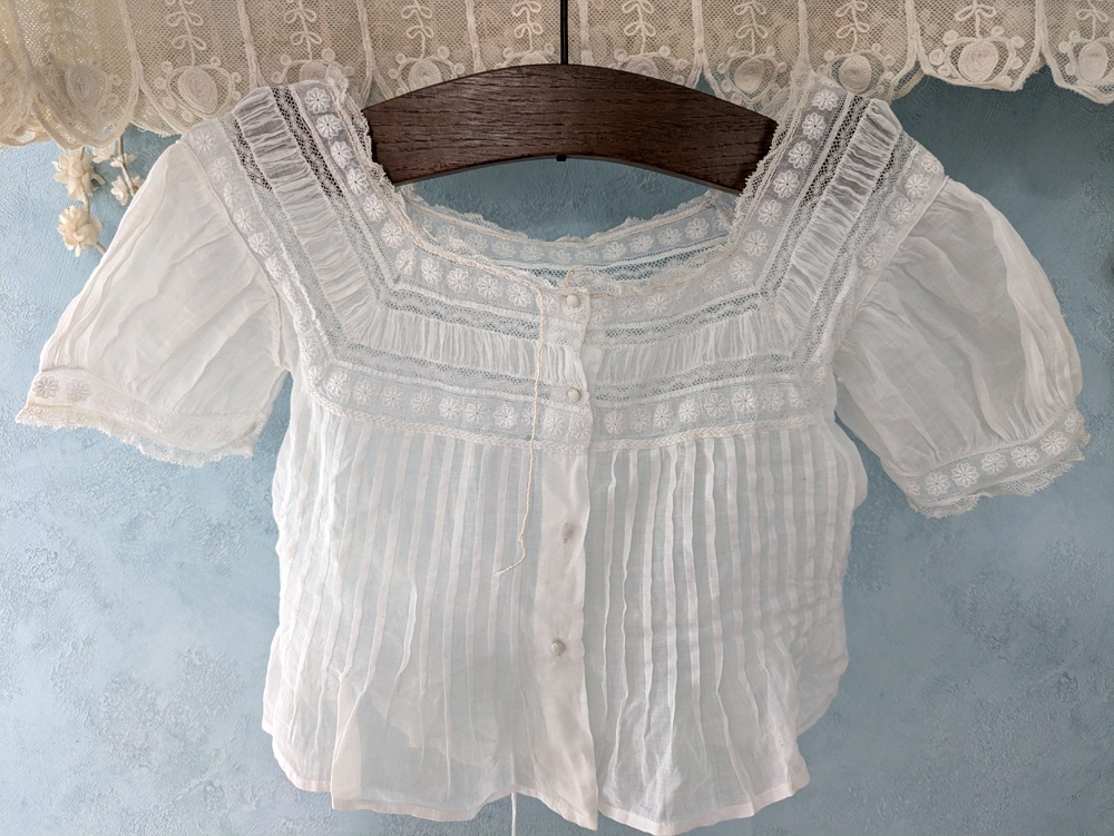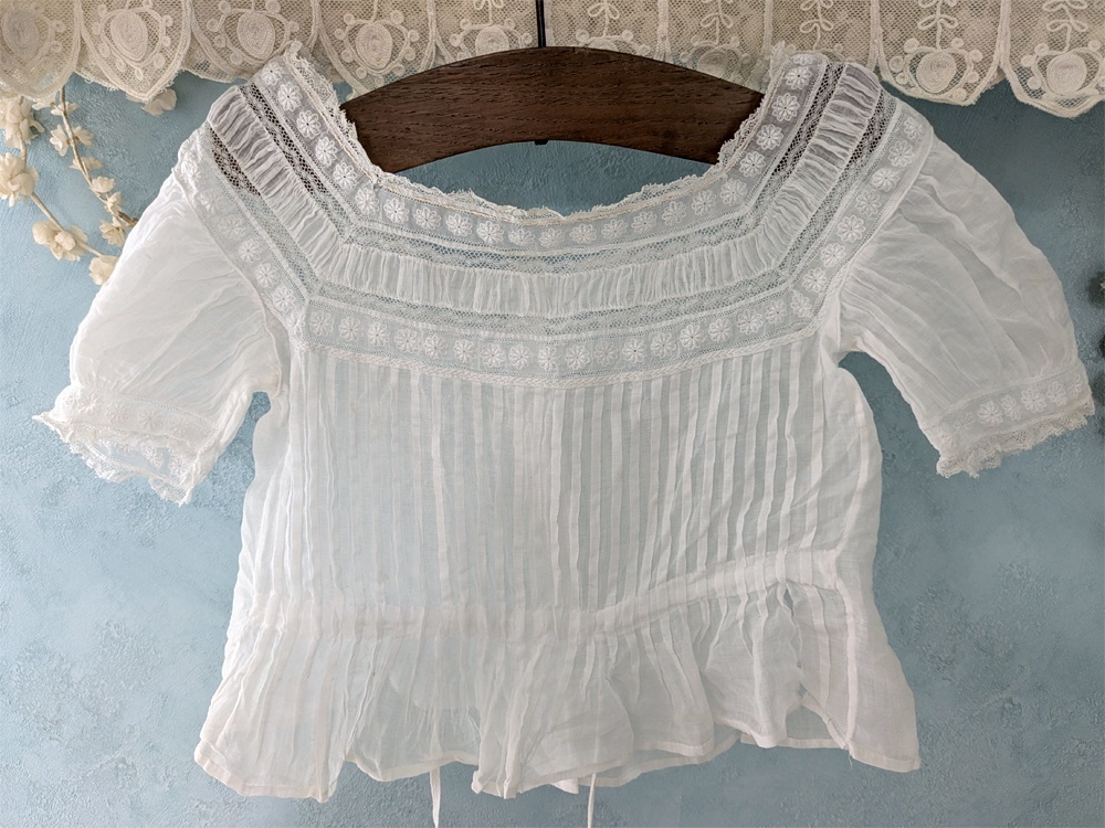 フランスアンティーク 白糸刺繍とピンタックの小さなブラウス