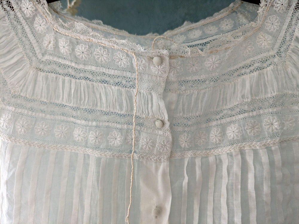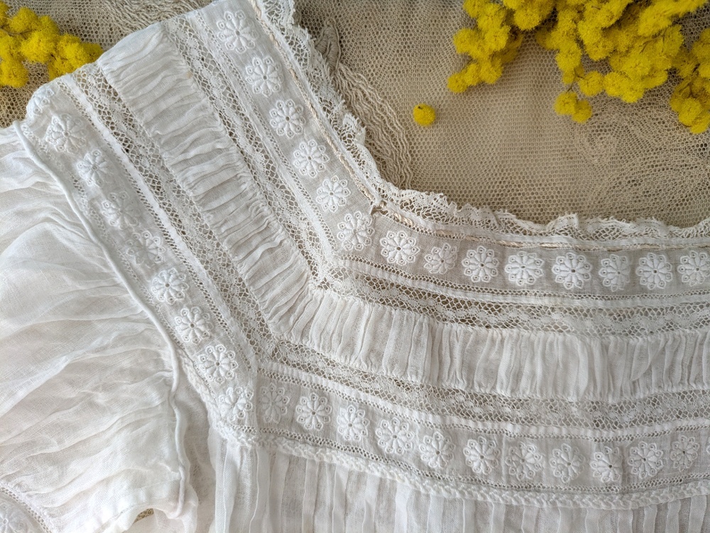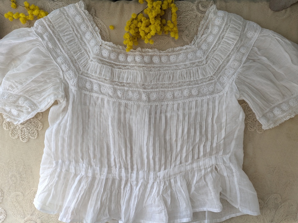 - > フランスアンティーク 白糸刺繍とピンタックの小さなブラウス