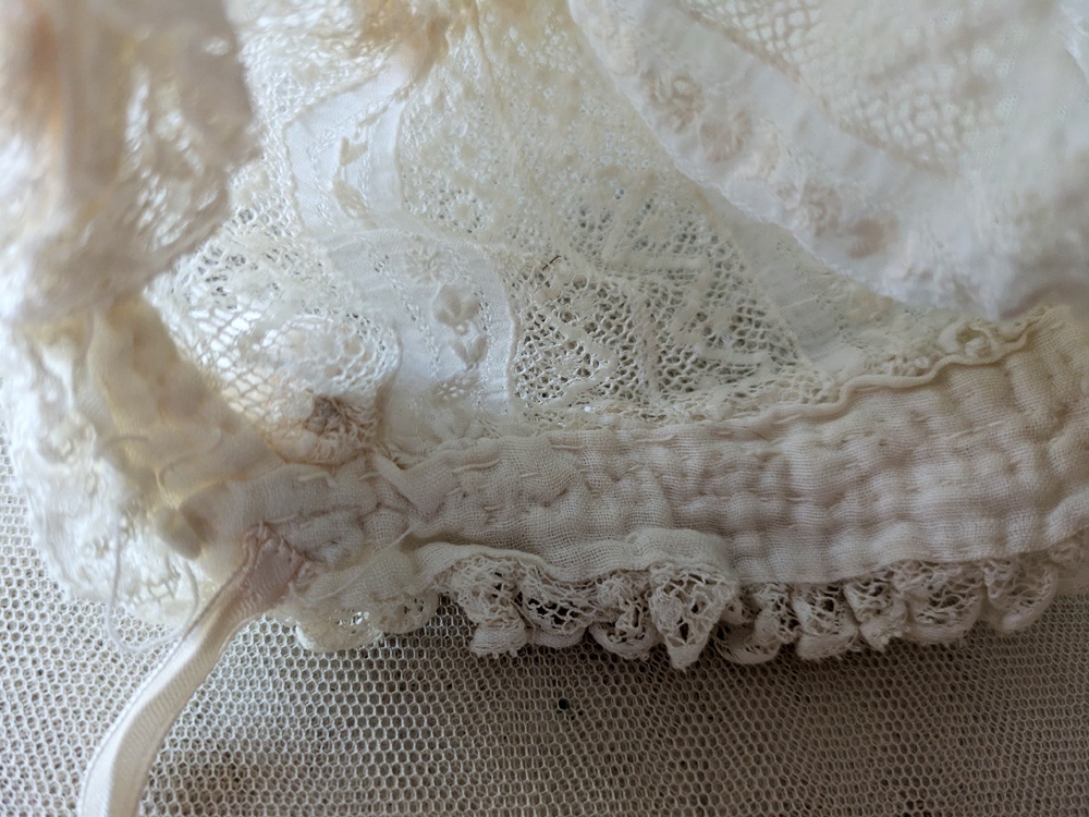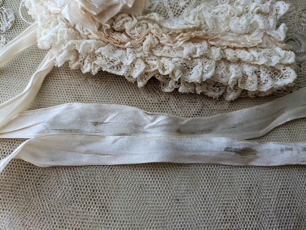 - > フランス 1900年前後 レースとシルクリボンの小さなボネ