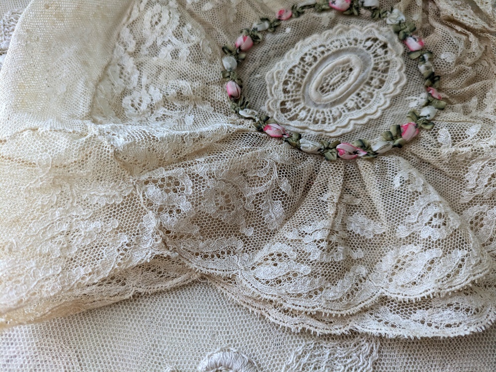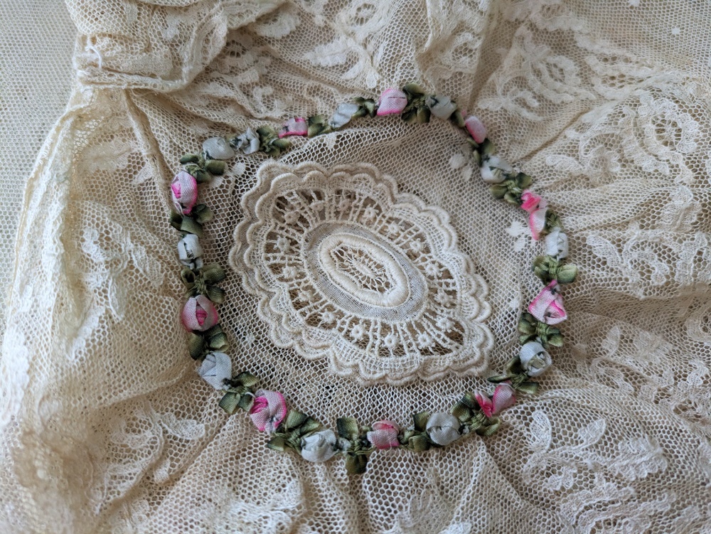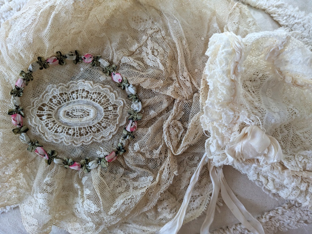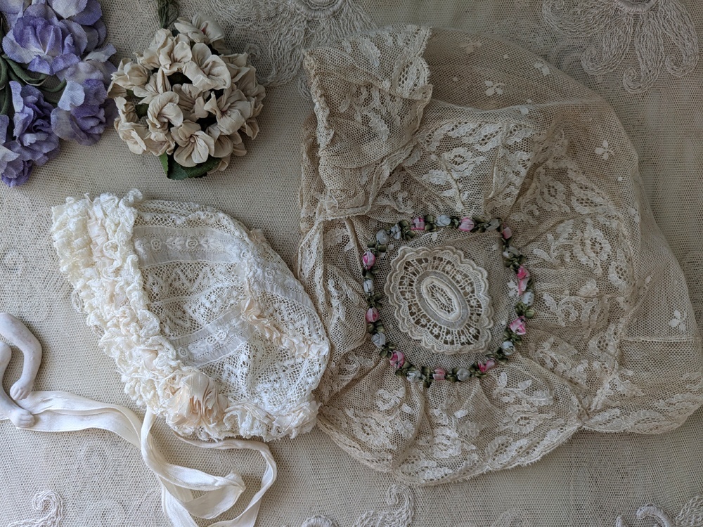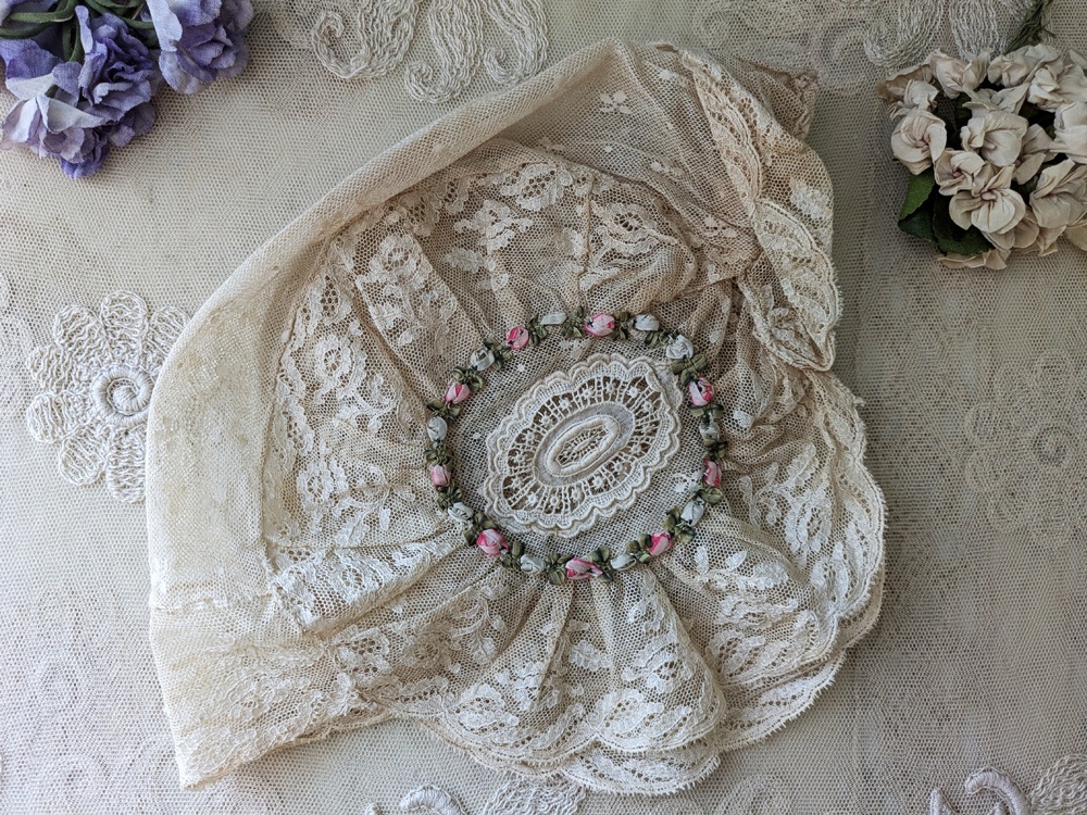 フランス 1900年前後 レースとロココリボンのボネ
