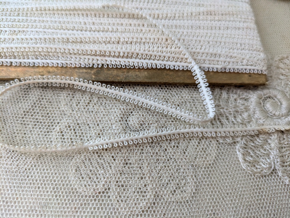 ※レースのはじめに飾りレースのサンプルがあります飾りレースサンプル(約10cm)がつきます