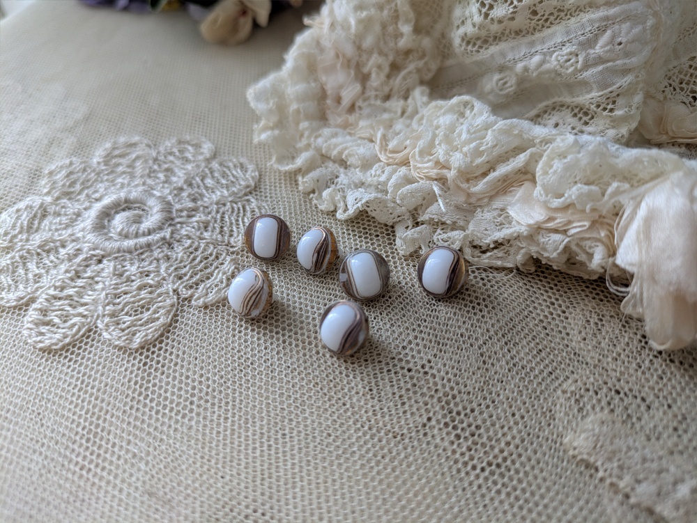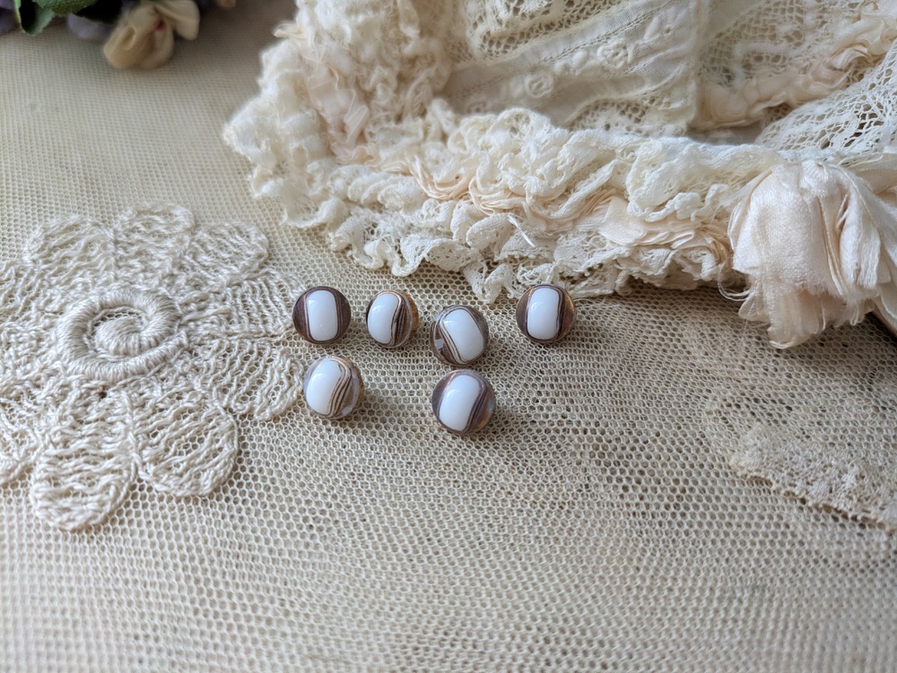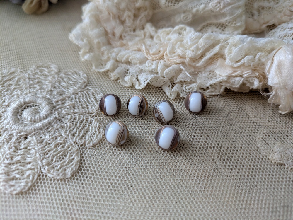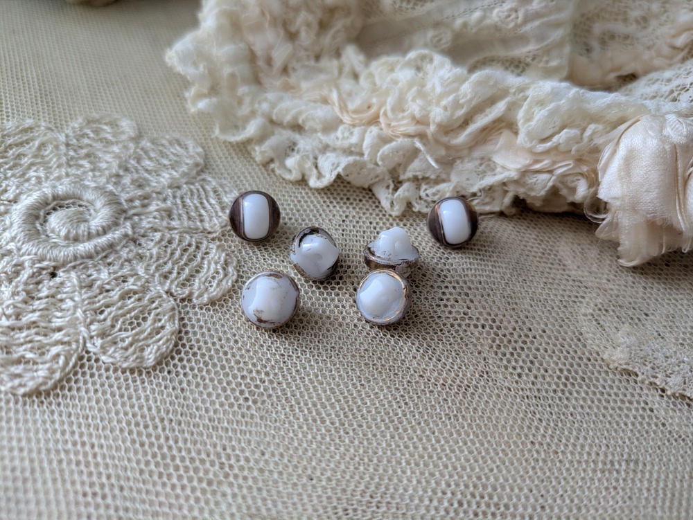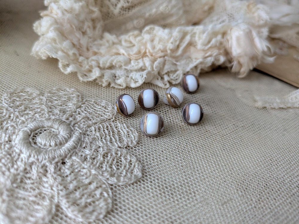 フランス 1900年前後 極小ボタン白×ゴールド 9mm 6個セット