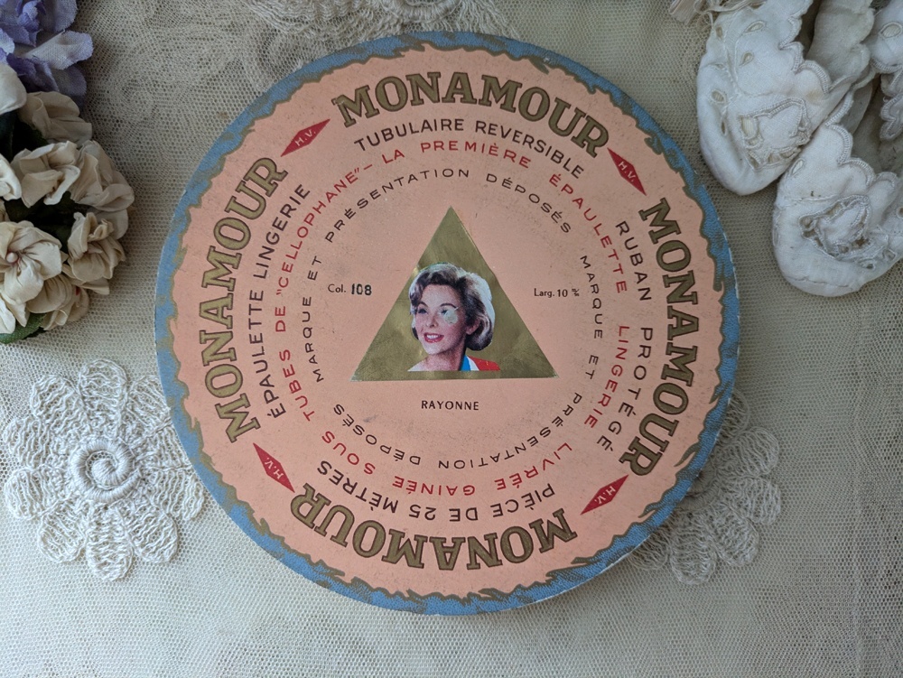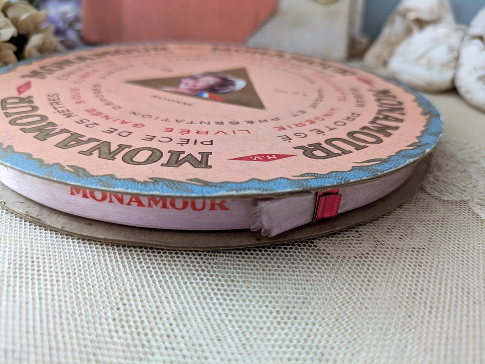- > フランス 1950-60年代 未開封巻きリボン ピンク MONAMOUR