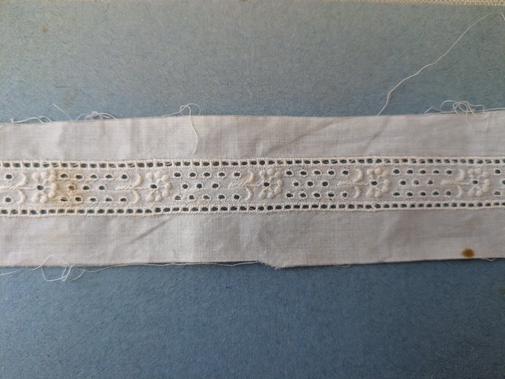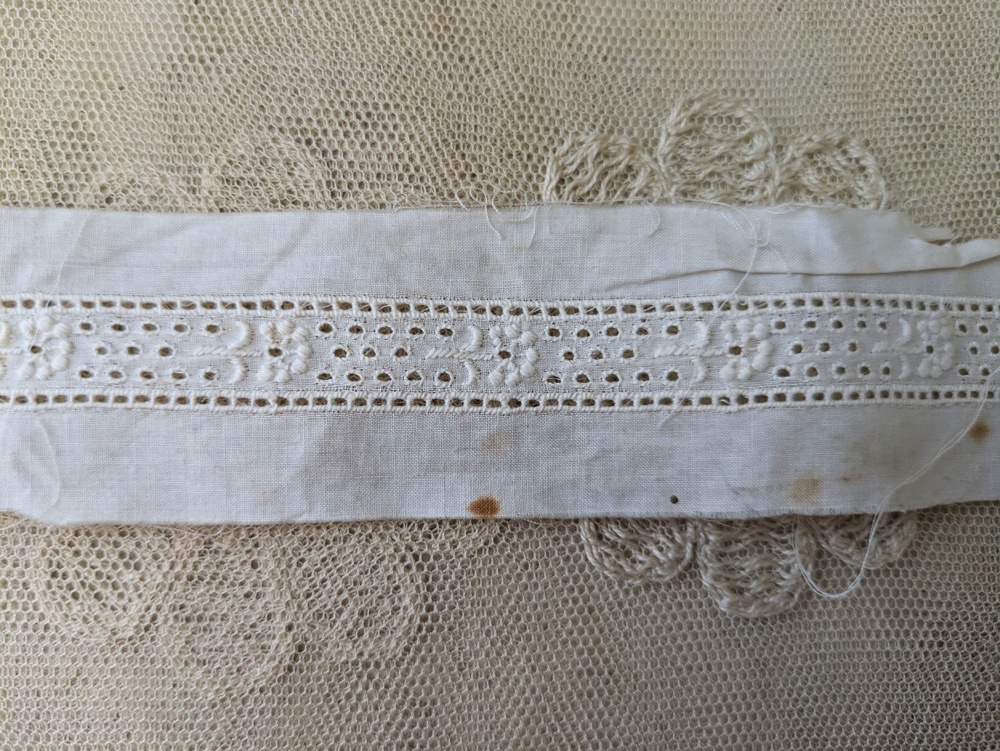 - > フランスアンティーク コットン刺繍レース 202cm