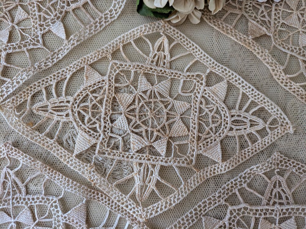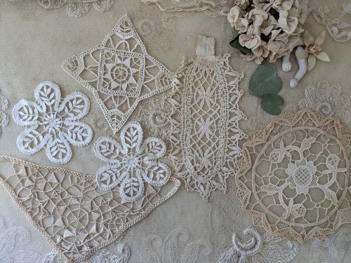 - > フランスアンティーク レースモチーフセット《ひし形7枚》