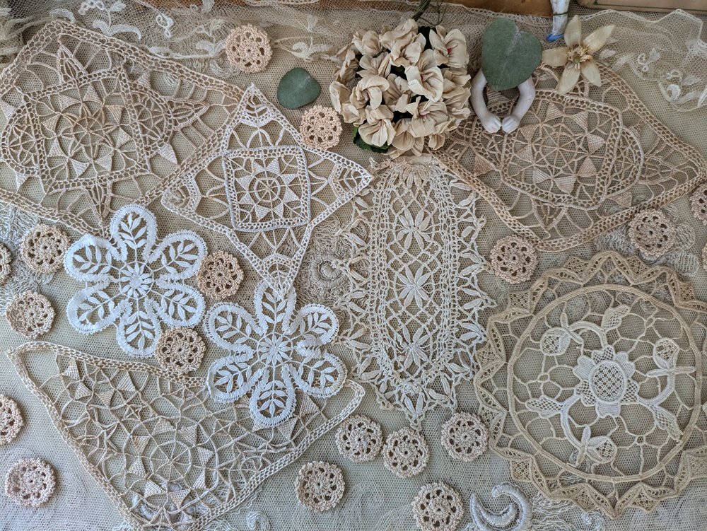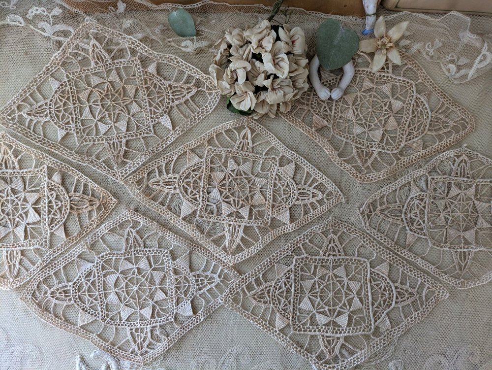 フランスアンティーク レースモチーフセット《ひし形7枚》