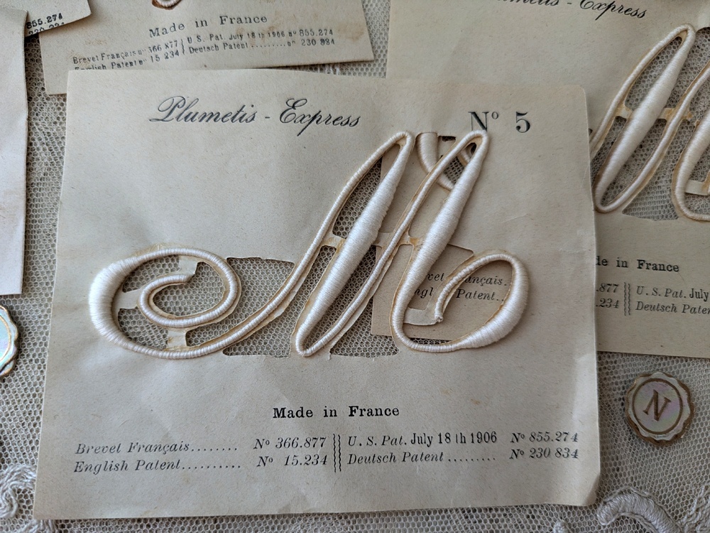 フランスアンティーク Plumetis-Express 刺繍イニシャルシート "M" No.5