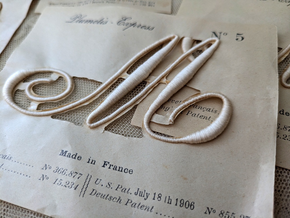 流れるような美しい曲線のカリグラフィの刺繍は、家着やリネン類ひとつひとつに家族のイニシャル刺繍を入れていた時代、お母さん達の手仕事の時間を短縮するために発案された製品でした。