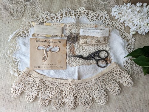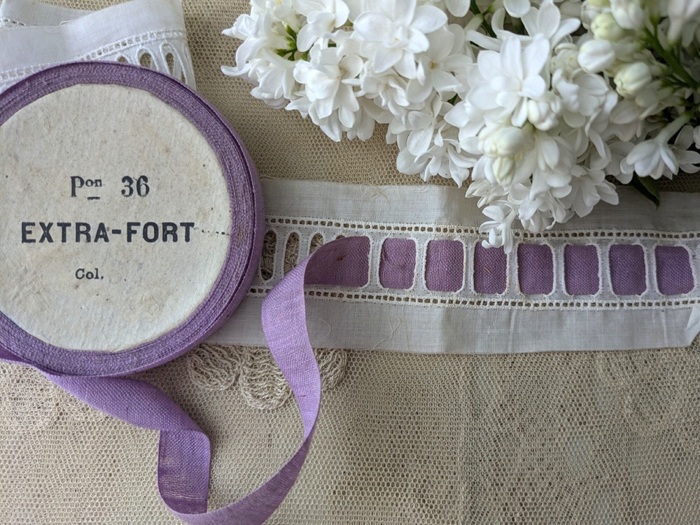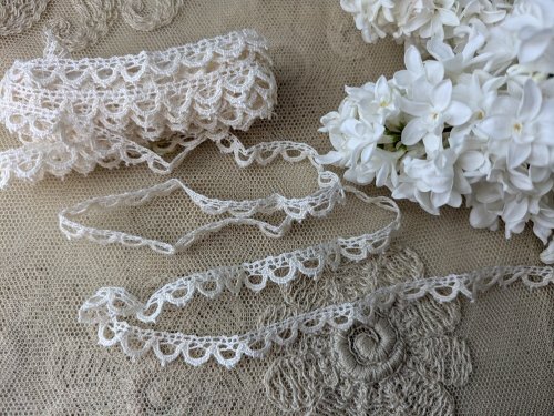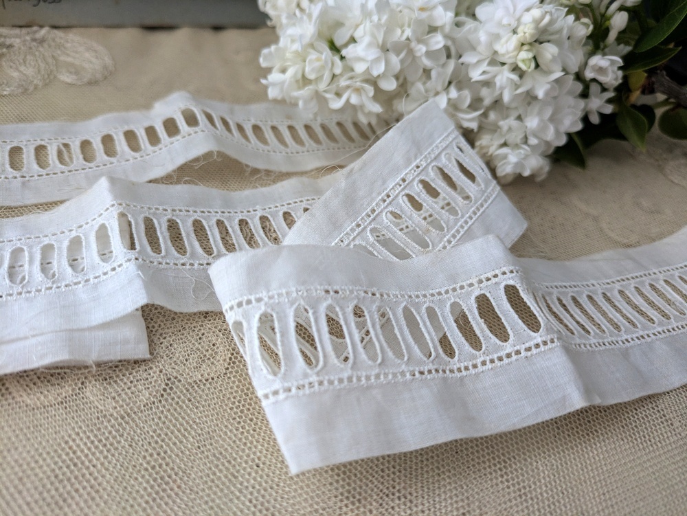 - > フランスアンティーク リボン通し穴のあるレース 65cm+82cm