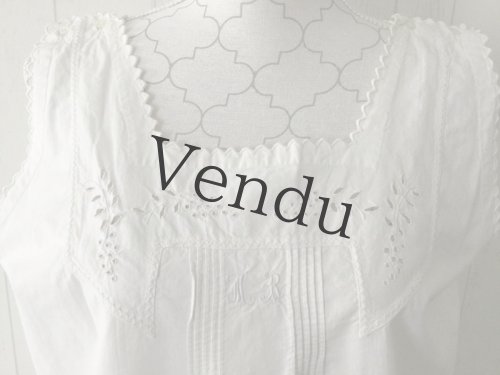 カットワークが可愛らしい、アンティークのコットンジレです。