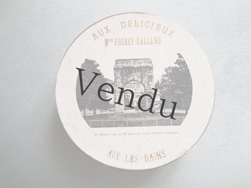 白地に金色のカリグラフィ、縁を彩る色褪せた水色が美しい珍しいタイプの紙箱です。