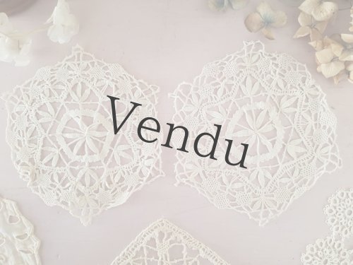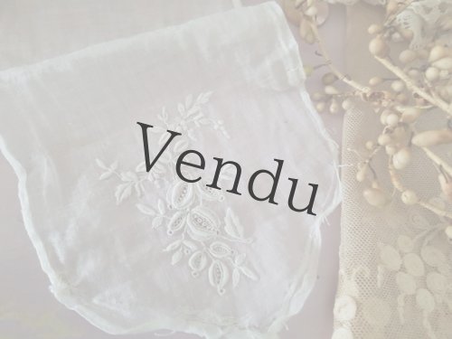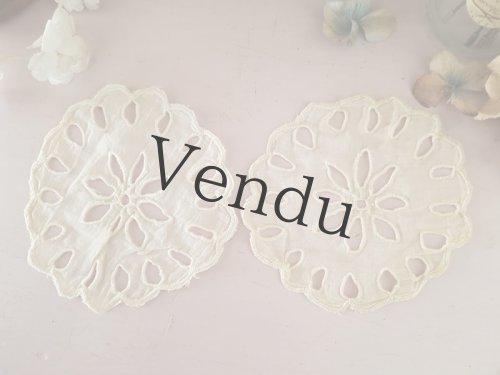 - > フランスアンティーク ホワイトワーク ポワニエ端切れ2枚