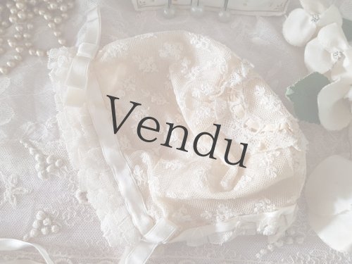 - > フランスアンティーク ノスタルジックな水色のちいさなボネ