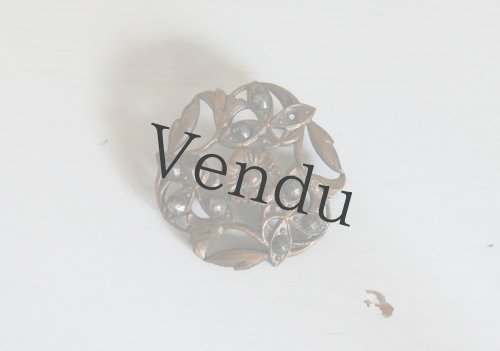 - > フランスアンティーク ロカイユ装飾真鍮ペイントボタン 22mm