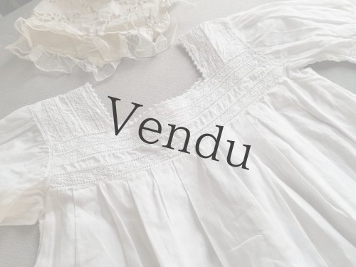 1900年頃の白糸刺繍でたっぷり装飾された可憐なバボワールです。